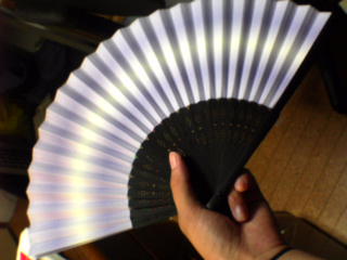 そしてもう一つのアイテム「扇子」。 100円ショップですね~(ケチっぽい) でもこの紫のグラデーションが気に入って購入しました。 でも今思えば紫の花柄が良かったなあ…