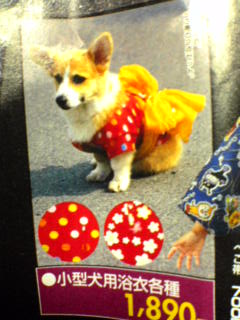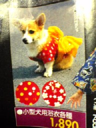 犬用の浴衣です。今の世の中って、犬用のホテルだのなんだのがあって贅沢ですよねー… いくら愛犬だからってなんか間違ってる気が… ていうかそんなんに金を使う人の頭の中が知りたい。
